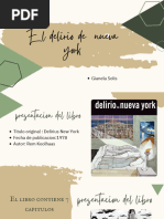 Delirious New York o, en su versin en castellano,Delirio de Nueva York, es el "manifiesto retroactivo para Manhattan" escrito por el arquitecto holands Rem Koolhaas y publicado en 1978. Este texto es brillante y sorprendente. A pesar de ser una absoluta novicia en el campo de la arquitectura, he disfrutado de cada frase y teora sobre la "cultura de la congestin", la cultura del siglo XX, encarnada, personificada por Manhattan. Sin embargo, este libro es una lectura imprescindible porque, adems de hablarnos de arquitectura, de cultura y de Nueva York, el manifiesto de Koolhaas nos ofrece claves para entender el intento de controlar el chaos de la urbe moderna y, por extensin, una historia del siglo XX, de sus desafos, de los aciertos y desaciertos de un siglo de progreso con la metropolis como metfora. Qu nos dice la contraportada? "Manhattan es el escenario donde se representa el ltimo acto de la civilizacin occidental. Con la explosin demogrfica y la invasin de las nuevas tecnologas, Manhattan se ha convertido, desde mediados del siglo XIX, en el laboratorio de una nueva cultura, la de la congestin; una isla mtica donde se hace realidad el inconsciente colectivo de un nuevo modo de vida metropolitano, una fbrica de lo artificial donde lo natural y lo real han dejado de existir. Delirio de Nueva York es un 'manifiesto retroactivo', una interpretacin de la teora no formulada que subyace en el desarrollo de Manhattan; es el relato de las intrigas de un urbanismo que, desde sus inicios en Coney Island hasta los tericos del rascacielos, ha hecho explotar su retcula de origen. Este libro, polmico y premonitorio (publicado originariamente en 1978), ilustra las relaciones entre un universo metropolitano mutante y la singular arquitectura que puede producir; y afirma tambin que, con frecuencia, la arquitectura genera la cultura." Qu nos dice el texto? "Los iconos de la religin son sustituidos por los del construir. La arquitectura es la nueva religin de Manhattan."