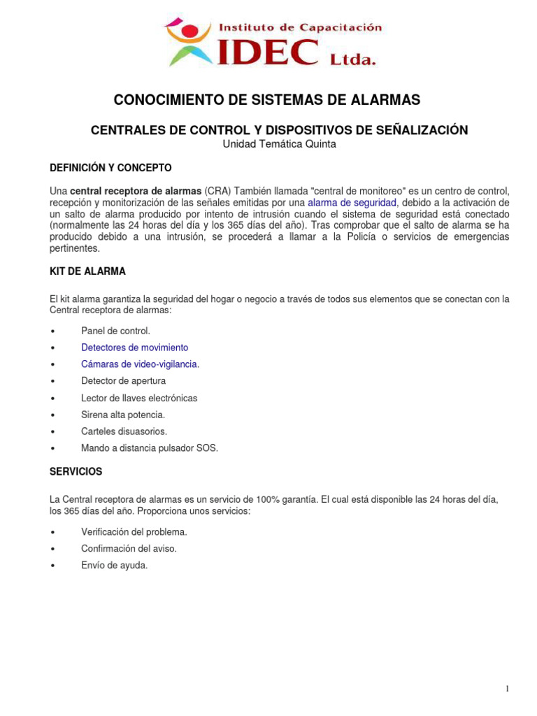 CONOCIMIENTO DE SISTEMAS DE ALARMAS