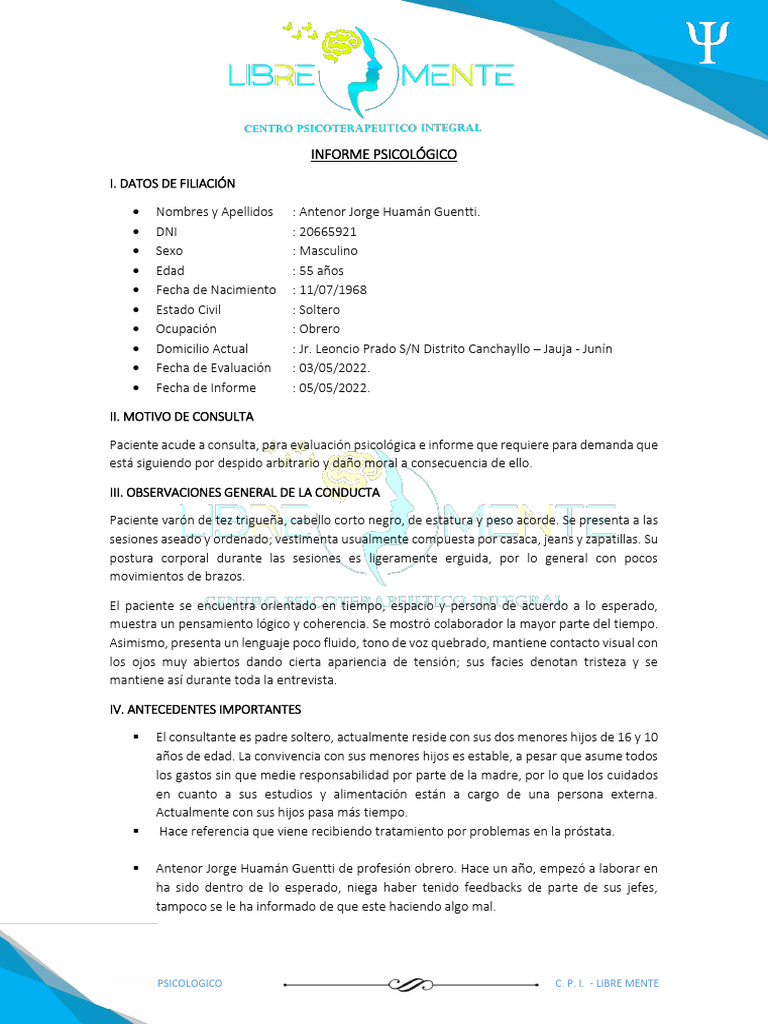 INFORME PSICOLOGICO C. P. I. - LIBRE MENTE