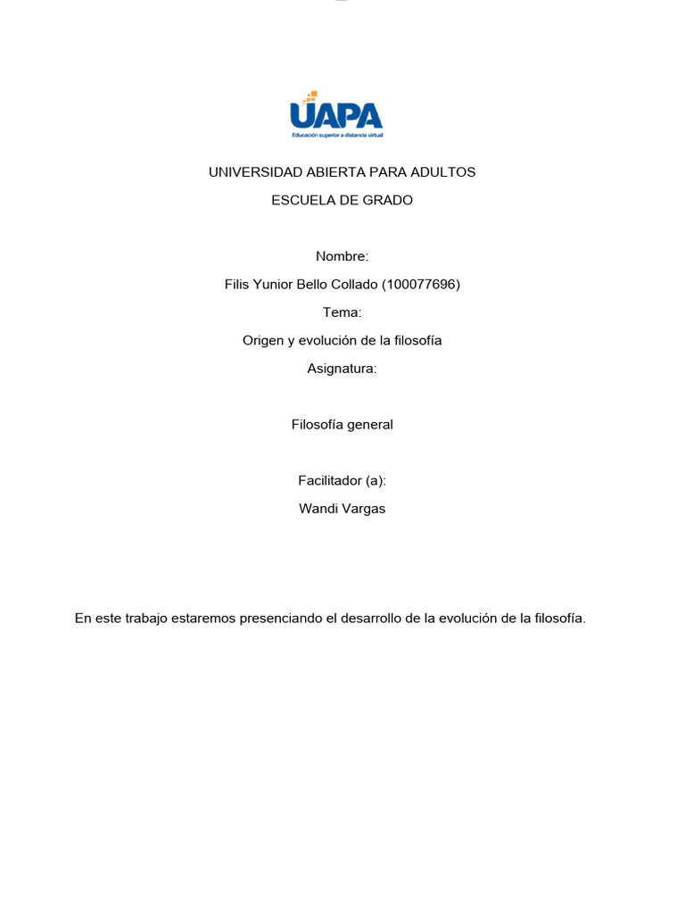 En este trabajo estaremos presenciando el desarrollo de la evolución de la filosofía.