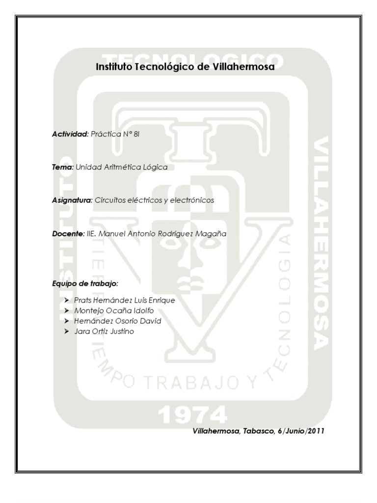 Con esta prctica, podemos concluir que esta unidad es la encargada de realizar las operaciones elementales de tipo aritmtico (generalmente sumas o restas) y de tipo lgico (generalmente comparaciones) en los computadores. El uso de los multiplexores en el diseo de circuitos combinacionales, es una herramienta eficiente para simplificar la aplicacin de los mismos. El uso de los multiplexores, adems de disminuir el tamao de los circuitos, tambin disminuye considerablemente su costo y el procedimiento de mantenimiento. Tambin esto se relaciona con el componente principal de los computadores, que es la CPU o unidad central de proceso UCP es el verdadero cerebro de la computadora; su misin consiste en coordinar y controlar o realizar todas Las operaciones del sistema. Se compone de elementos cuya naturaleza es exclusivamente electrnica (circuitos). La unidad central de proceso UCP es el verdadero cerebro de la computadora; su misin consiste en coordinar y controlar o realizar todas Las operaciones del sistema. Se compone de elementos cuya naturaleza es exclusivamente electrnica (circuitos). Sus partes principales son Las siguientes: