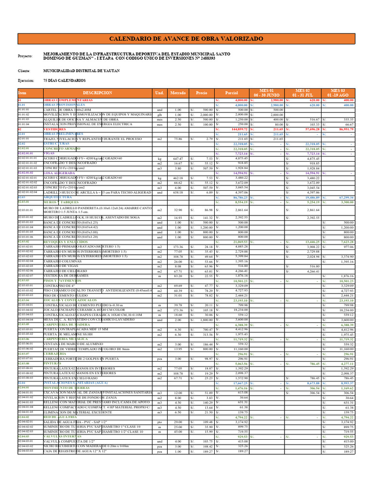 CALENDARIO DE AVANCE DE OBRA VALORIZADO