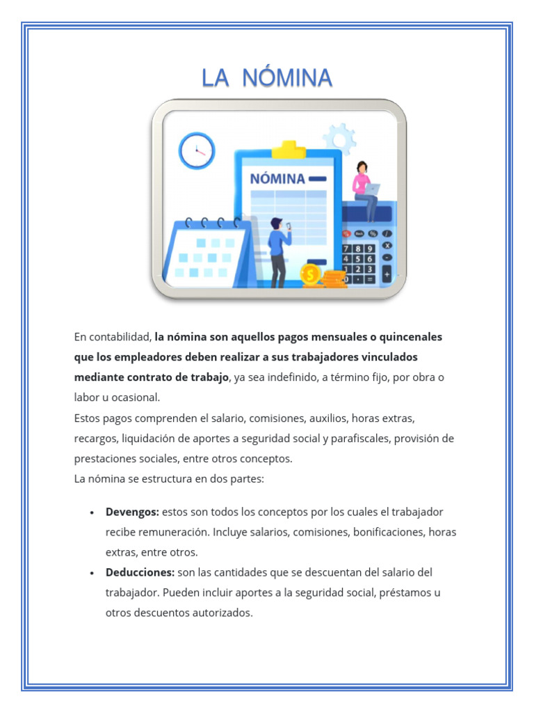 En contabilidad, la nómina son aquellos pagos mensuales o quincenales