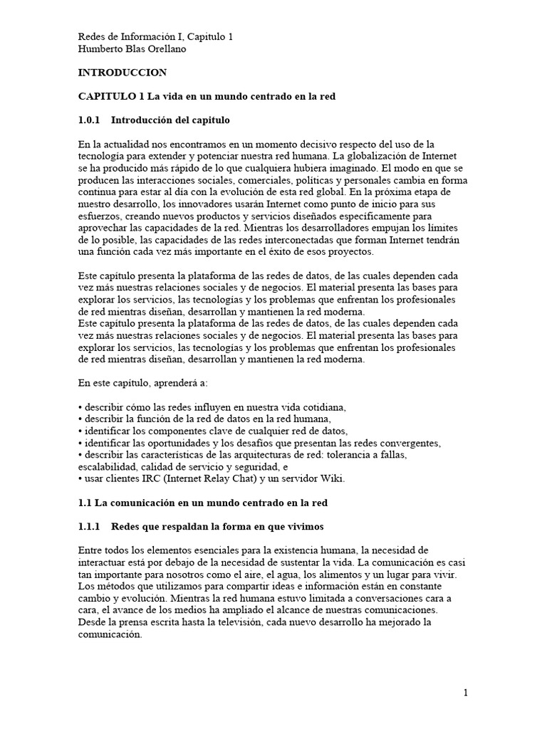 Redes de Información I, Capitulo 1