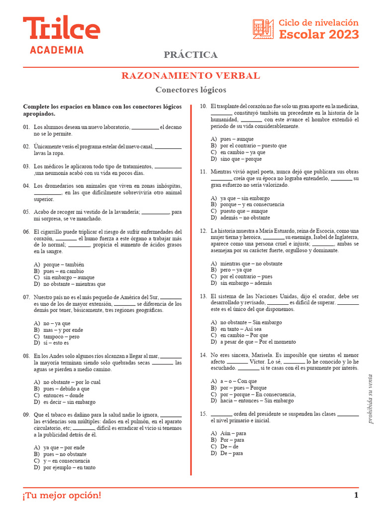 Conectores Lógicos en Razonamiento Verbal