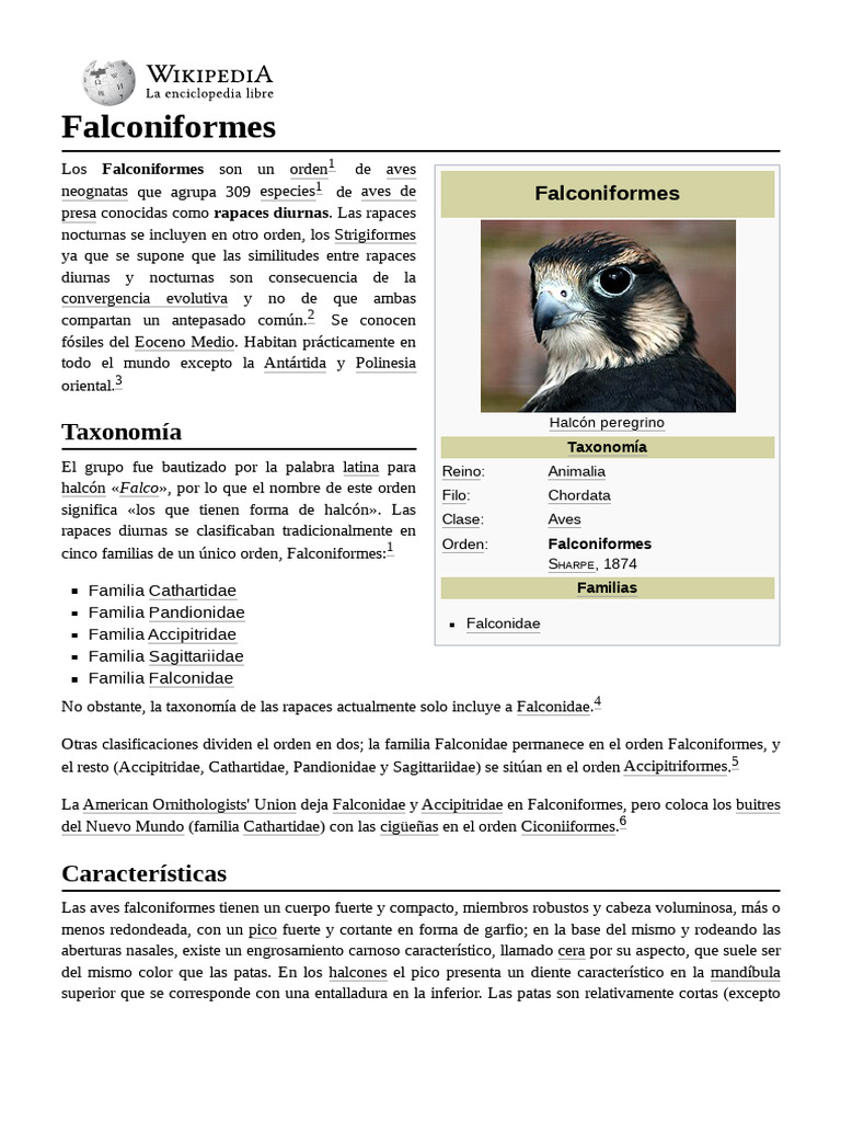 No obstante, la taxonomía de las rapaces actualmente solo incluye a Falconidae.4