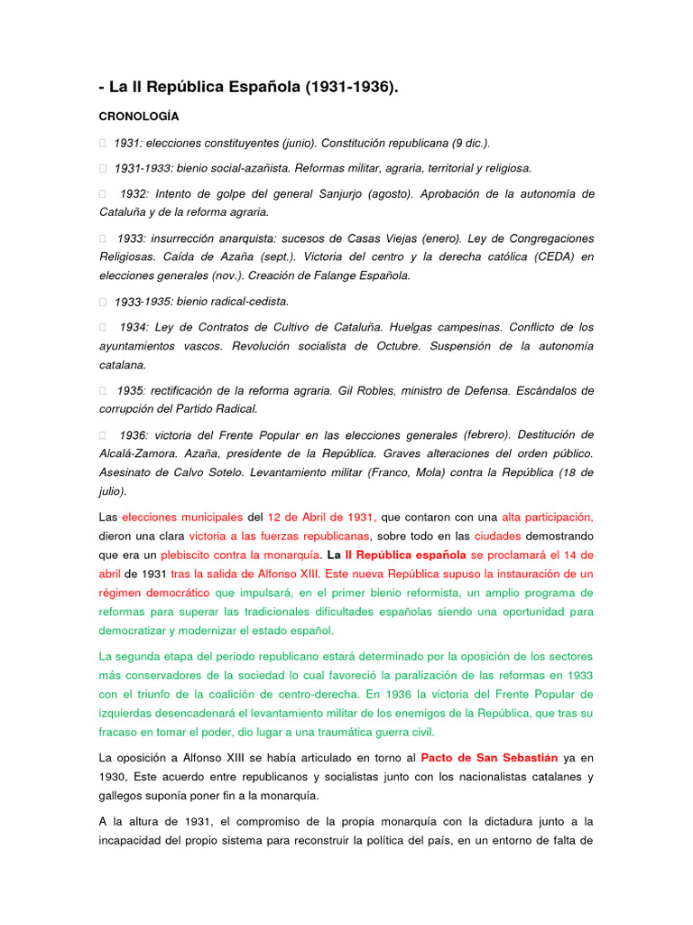 -1933: bienio social-azañista. Reformas militar, agraria, territorial y religiosa.