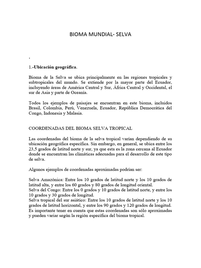 COORDENADAS DEL BIOMA SELVA TROPICAL