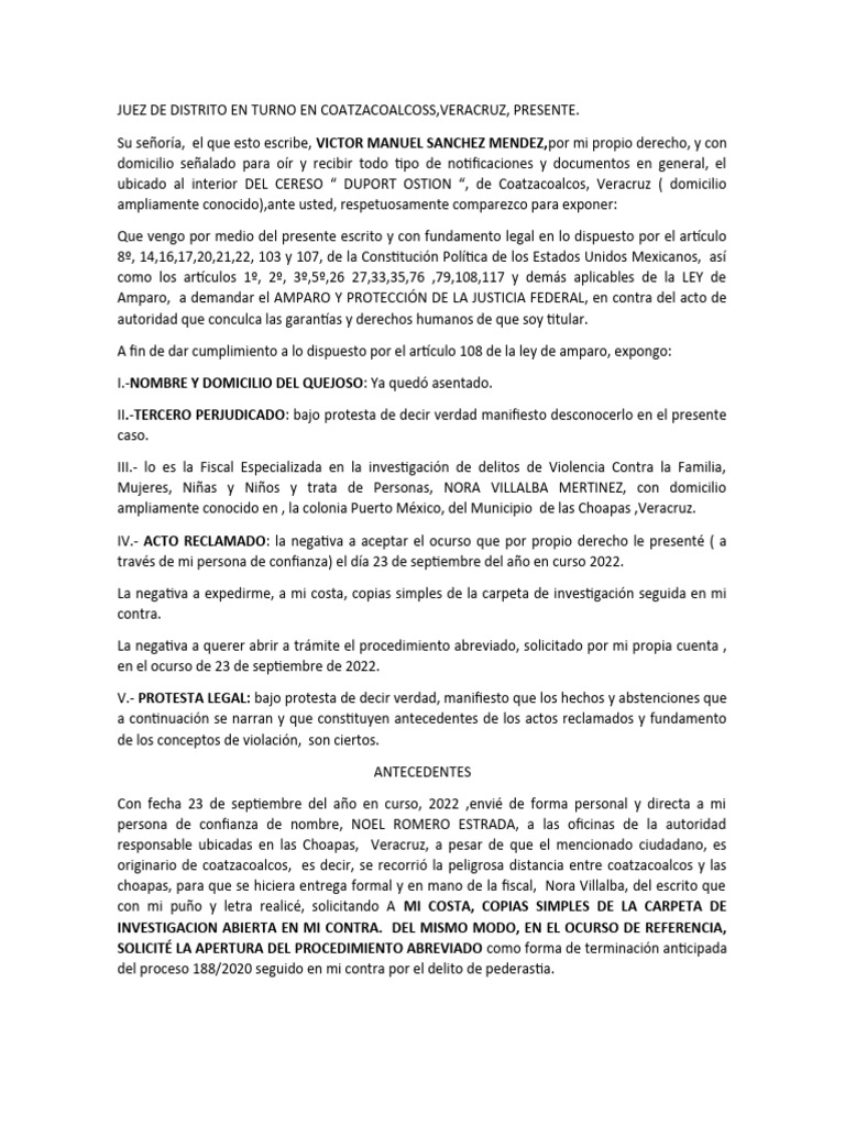 Su señoría, el que esto escribe, VICTOR MANUEL SANCHEZ MENDEZ,por mi propio derecho, y con