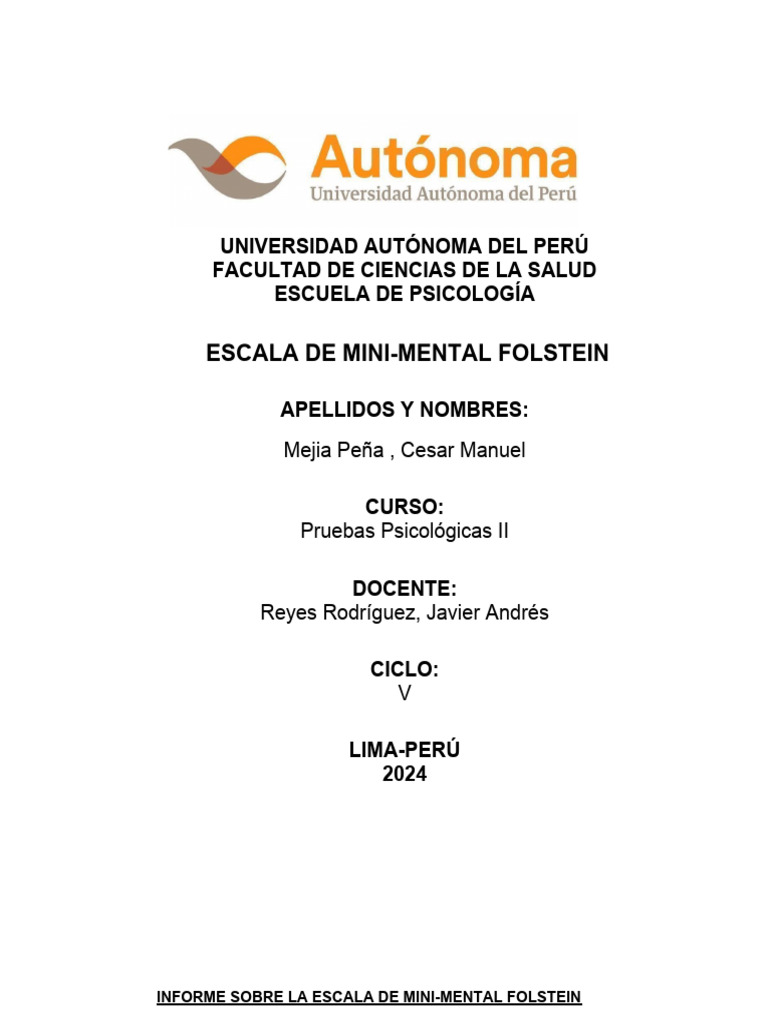 INFORME SOBRE LA ESCALA DE MINI-MENTAL FOLSTEIN