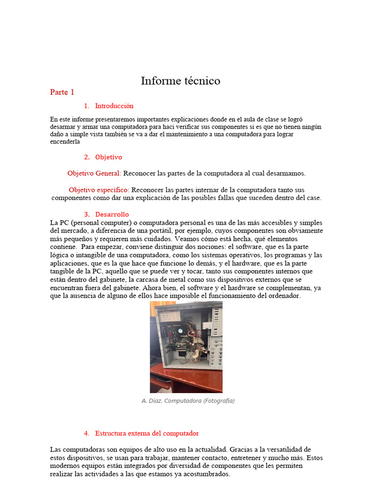 Objetivo General: Reconocer las partes de la computadora al cual desarmamos.