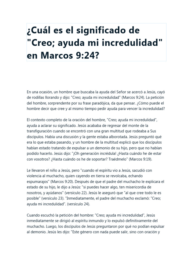 hombre decir que cree y al mismo tiempo pedir ayuda para vencer la incredulidad?