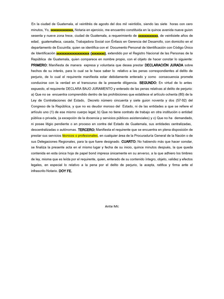 perjurio, de lo cual el requirente manifiesta estar debidamente enterado y como consecuencia promete