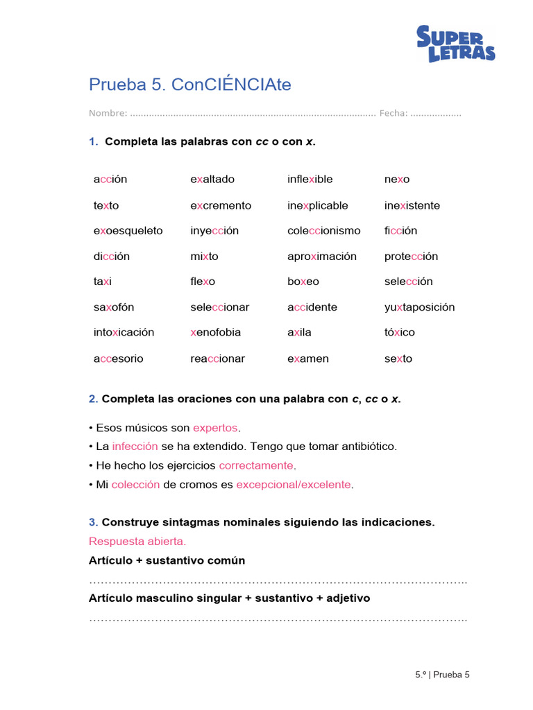 3. Construye sintagmas nominales siguiendo las indicaciones.