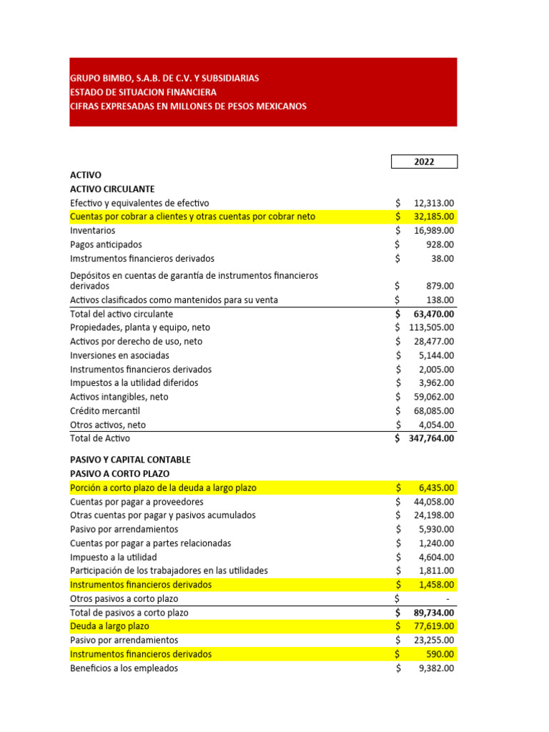 Estado Financiero Grupo Bimbo 2022