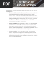 individual como grupal. Las técnicas de creatividad y de generación de ideas son
