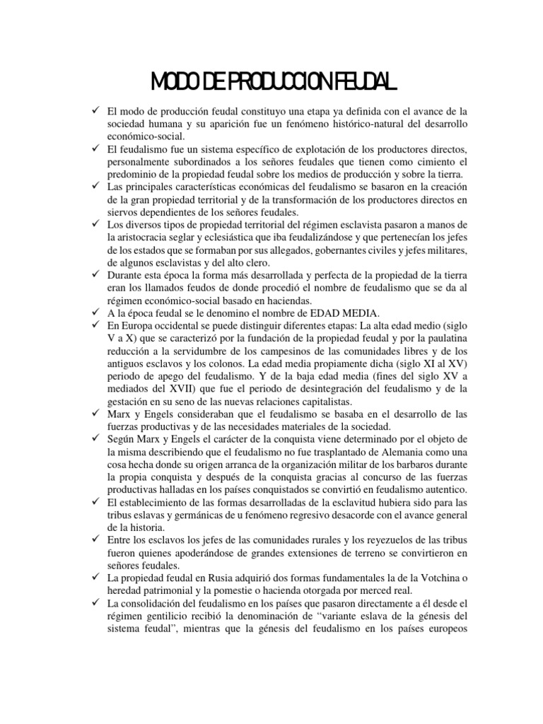 El modo de producción feudal constituyo una etapa ya definida con el avance de la