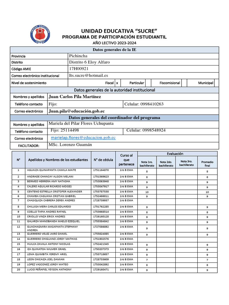 20 LUCIO PEÑAFIEL YEYSON ANTHONY 1729160471 1ro B EMA 9 9