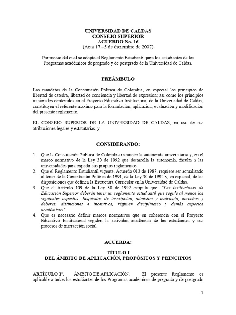 a. El Reglamento Estudiantil se concibe como un acuerdo autónomo de la comunidad