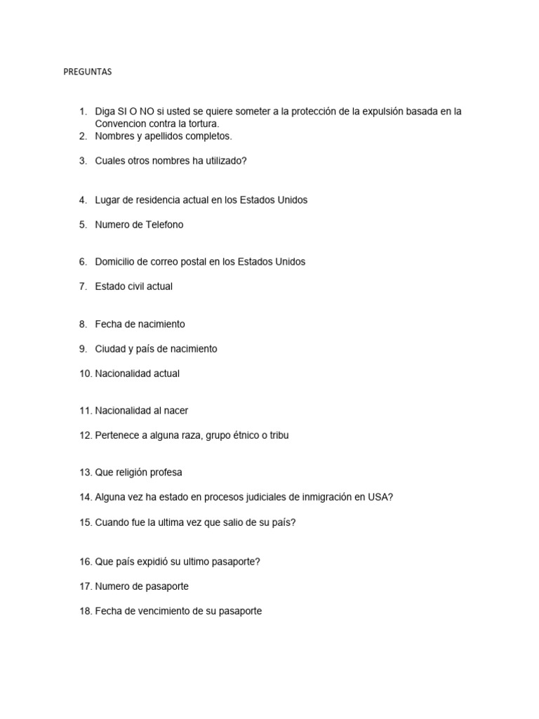 1. Diga SI O NO si usted se quiere someter a la protección de la expulsión basada en la