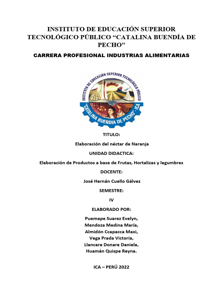 inversión, ni el uso de equipos sofisticados. Néctar de frutas es el producto elaborado con