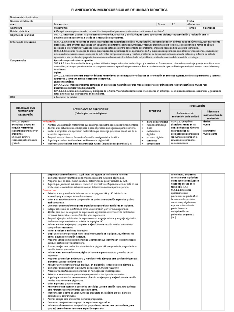 PLANIFICACIÓN MICROCURRICULAR DE UNIDAD DIDÁCTICA