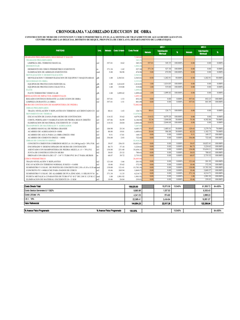 CRONOGRAMA VALORIZADO EJECUCION DE OBRA
