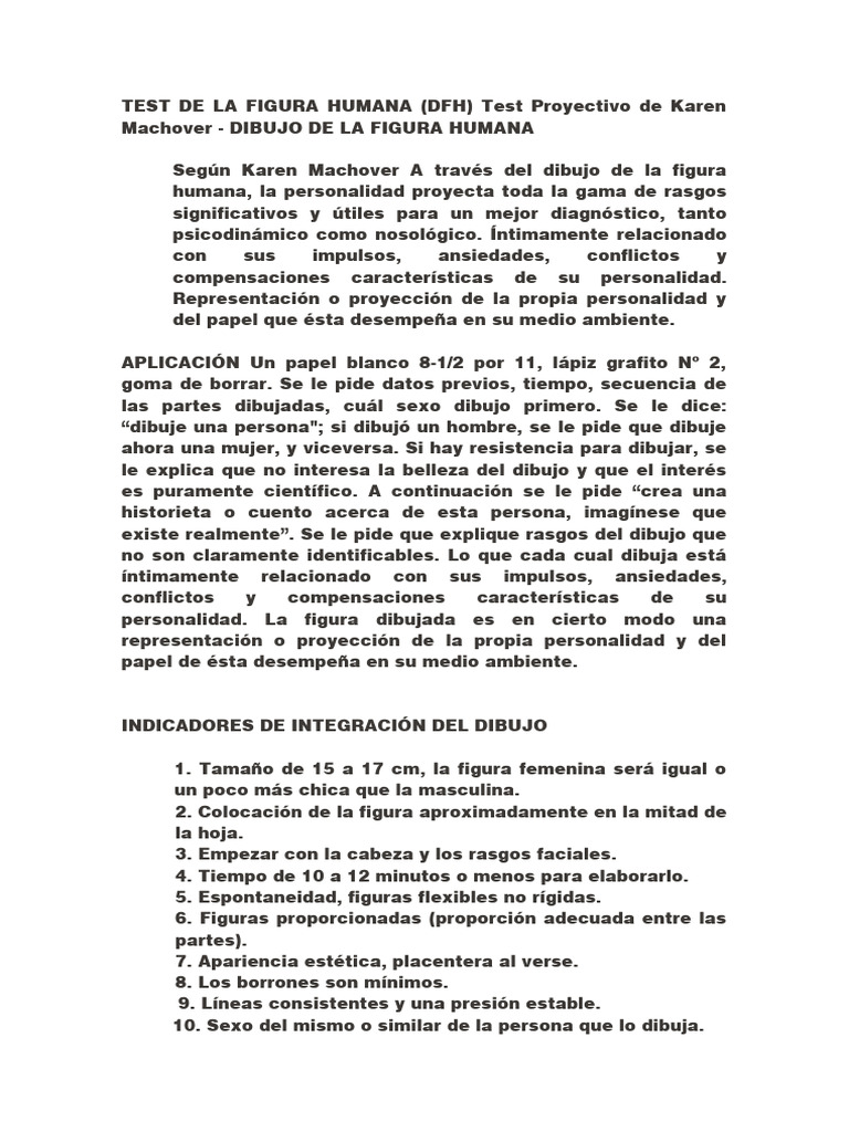 TEST DE LA FIGURA HUMANA (DFH) Test Proyectivo de Karen