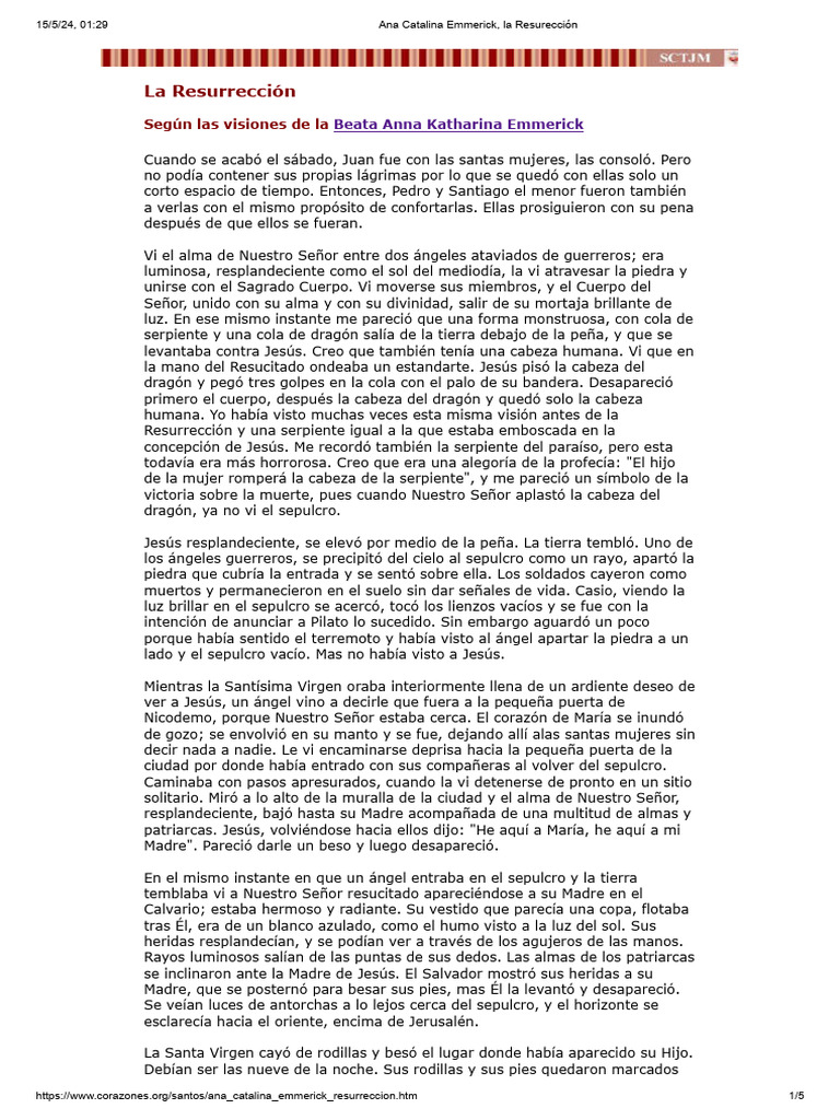 15/5/24, 01:29 Ana Catalina Emmerick, la Resurección