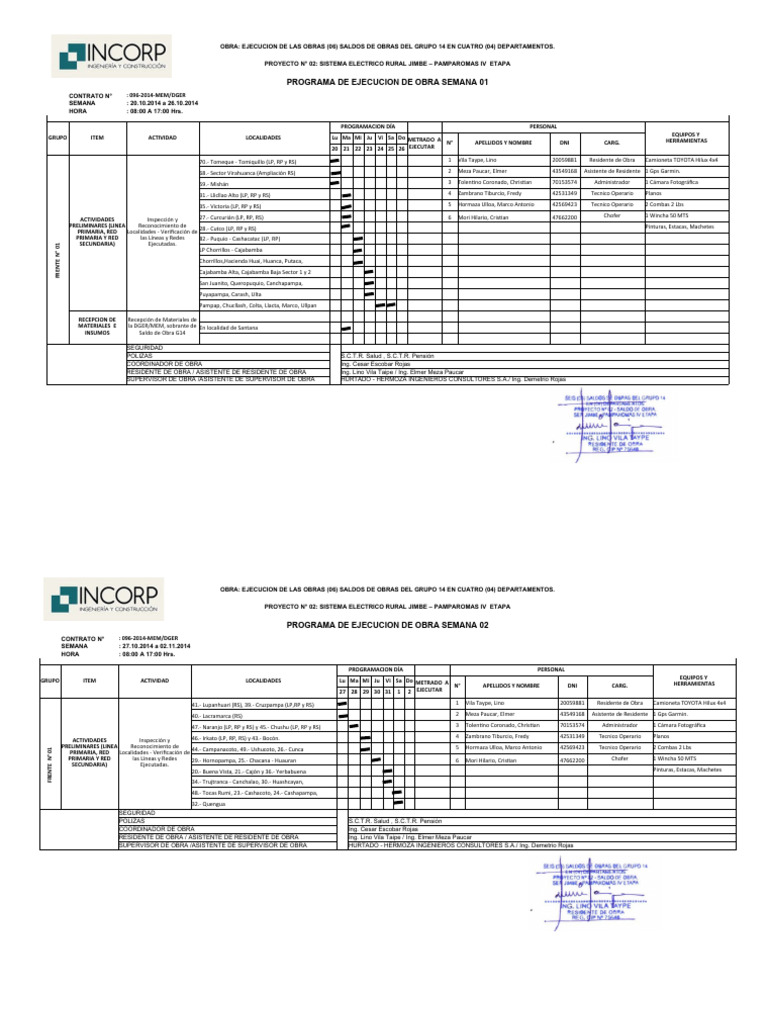 RESIDENTE DE OBRA / ASISTENTE DE RESIDENTE DE OBRA Ing. Lino Vila Taipe / Ing. Elmer Meza Paucar