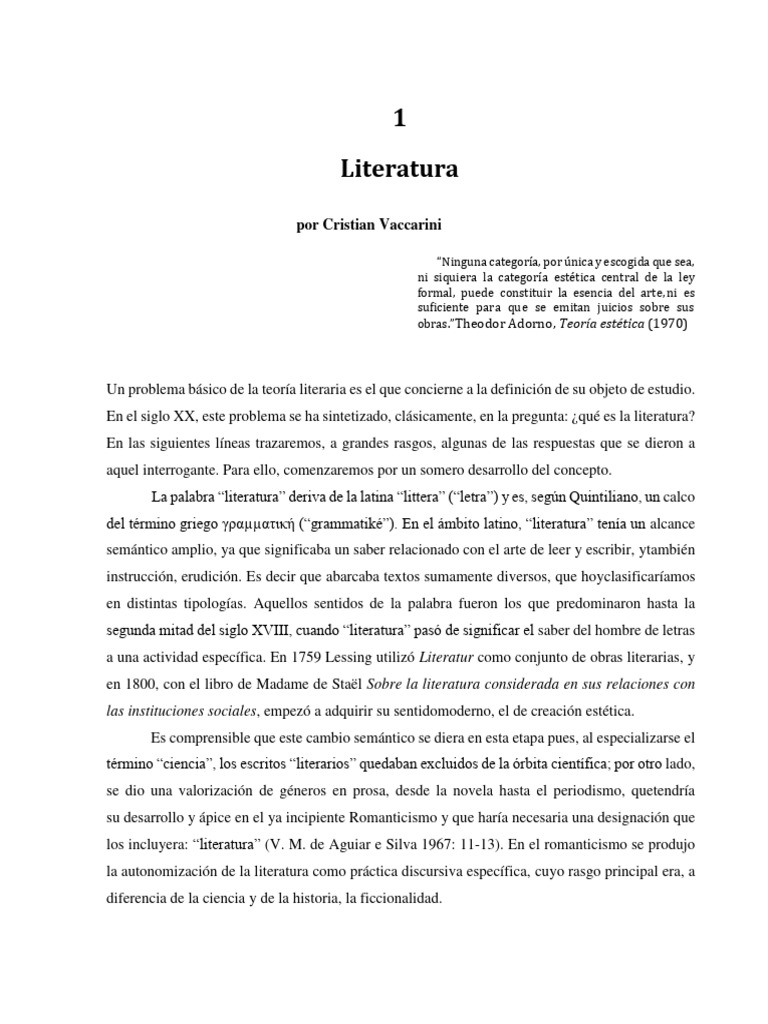 de la literatura, ni en la actualidad ni con respecto a épocas pasadas. La literatura es una categoría