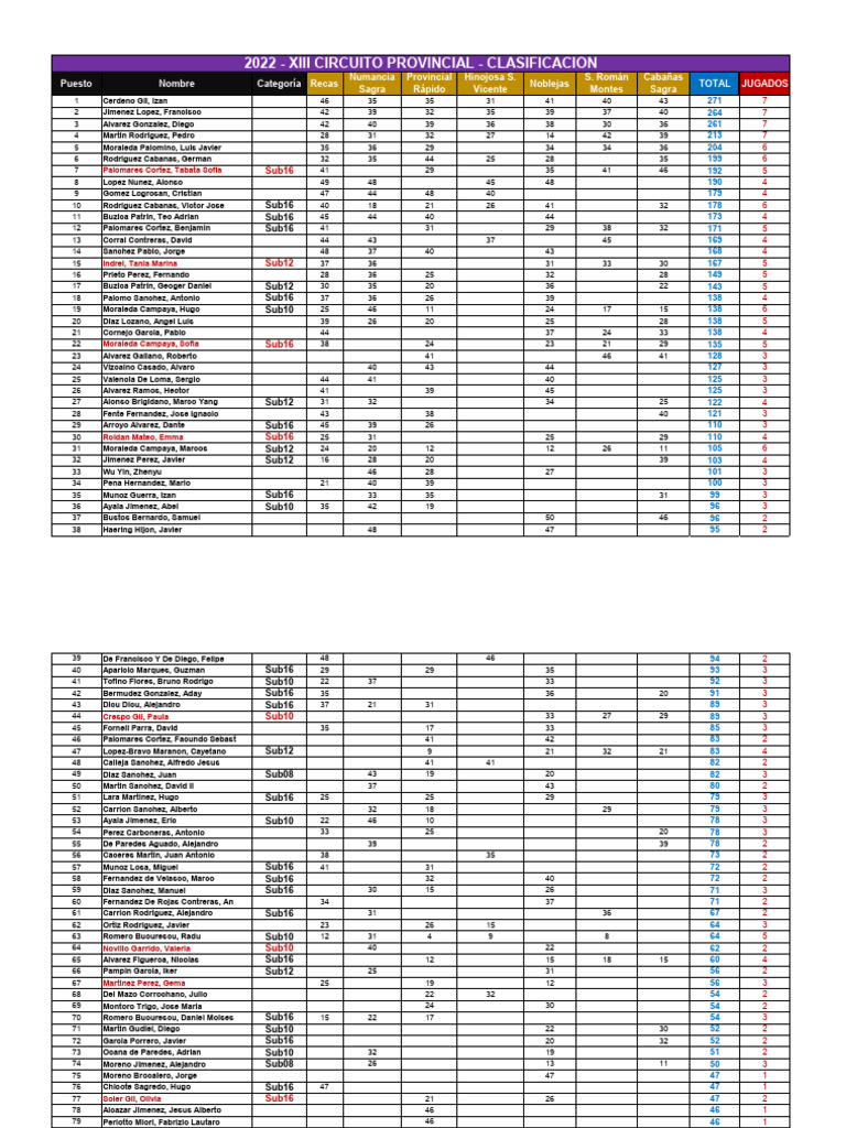 2022 - XIII CIRCUITO PROVINCIAL - CLASIFICACIÓN