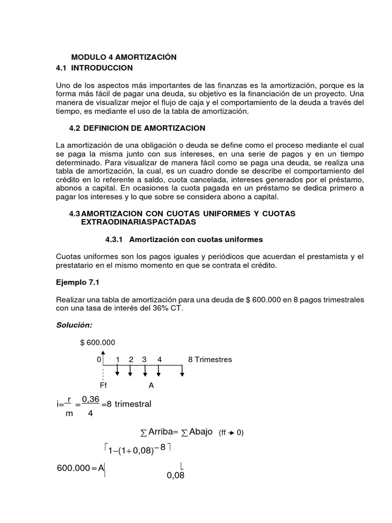 4.3.1 Amortización con cuotas uniformes