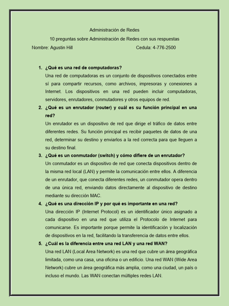 10 preguntas sobre Administración de Redes con sus respuestas