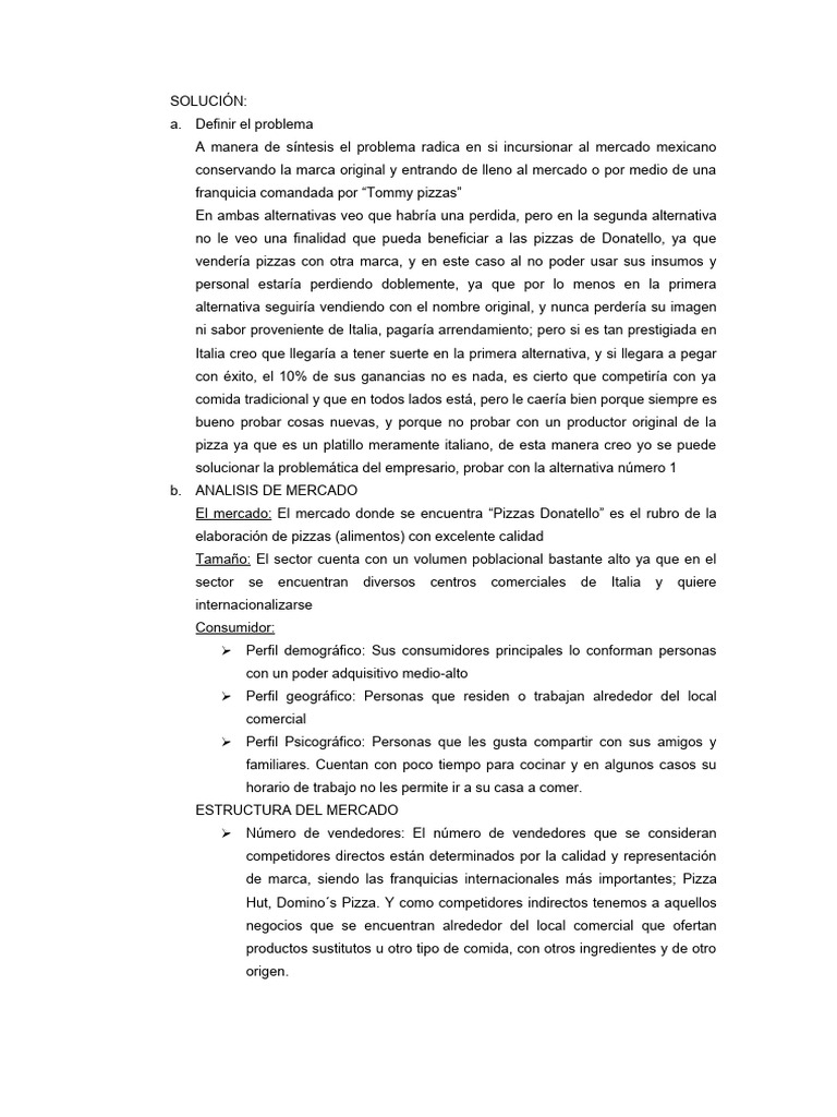 El mercado: El mercado donde se encuentra “Pizzas Donatello” es el rubro de la