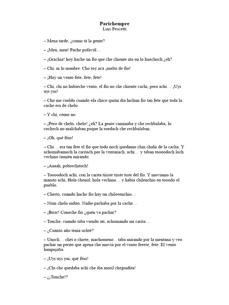 – Tonche abrí la peta y chalí corriendo ‘nmedio del fío y del vento fete y de