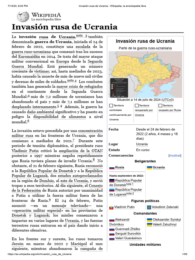 7/14/24, 9:04 PM Invasión rusa de Ucrania - Wikipedia, la enciclopedia libre