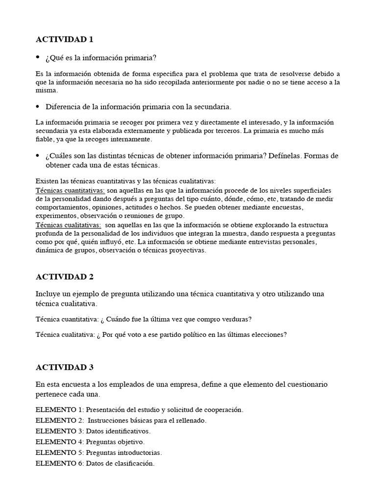 • ¿Cuáles son las distintas técnicas de obtener información primaria? Defínelas. Formas de