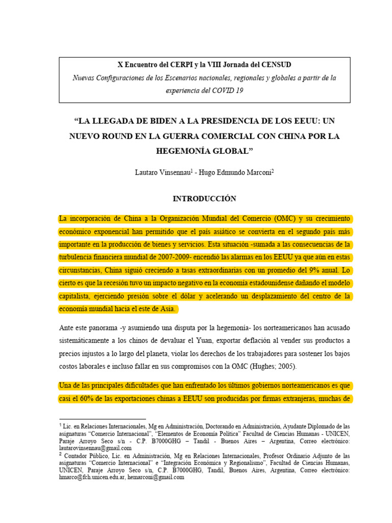 - Vinsennau, Lautaro & Marconi, Hugo (2018): “La guerra comercial entre EEUU y