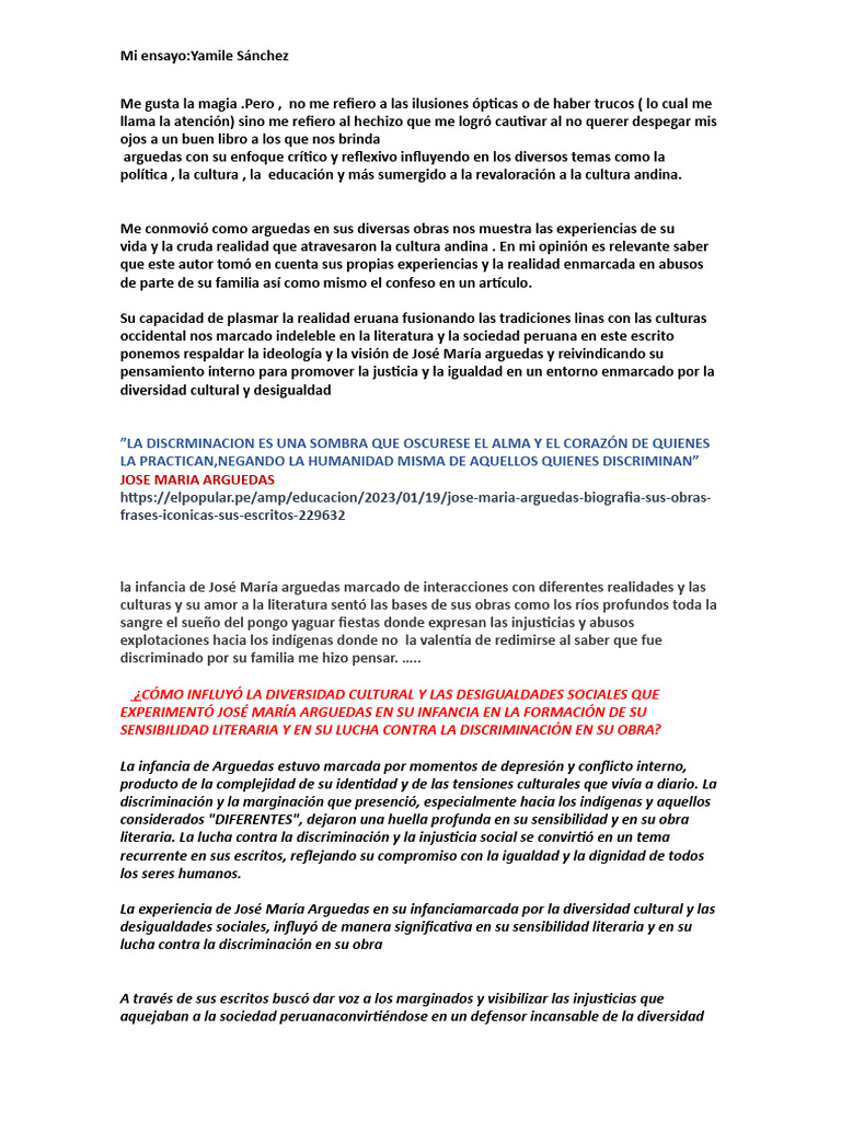 Me conmovió como arguedas en sus diversas obras nos muestra las experiencias de su