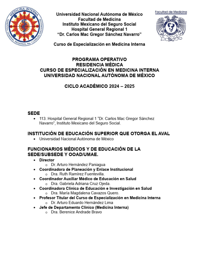 PLANTILLA DE MÉDICOS RESIDENTES