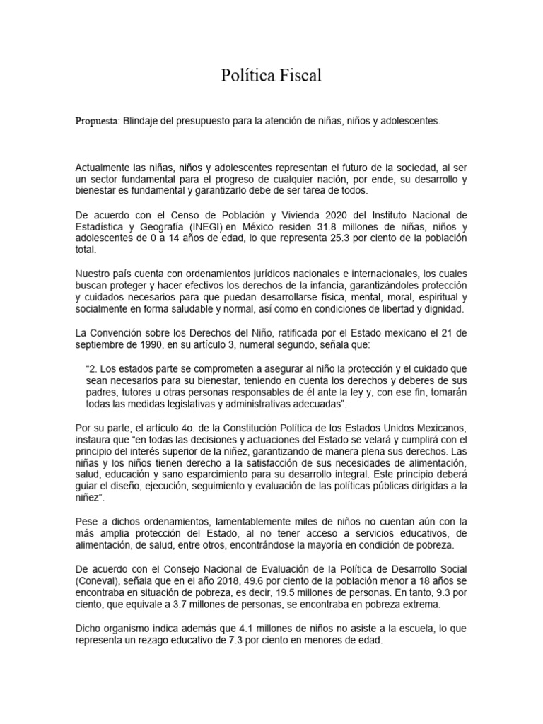 Propuesta: Blindaje del presupuesto para la atención de niñas, niños y adolescentes.