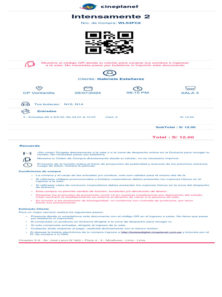 • Presenta desde tu smartphone este documento con el código QR en el ingreso a salas. No tiene que pasar