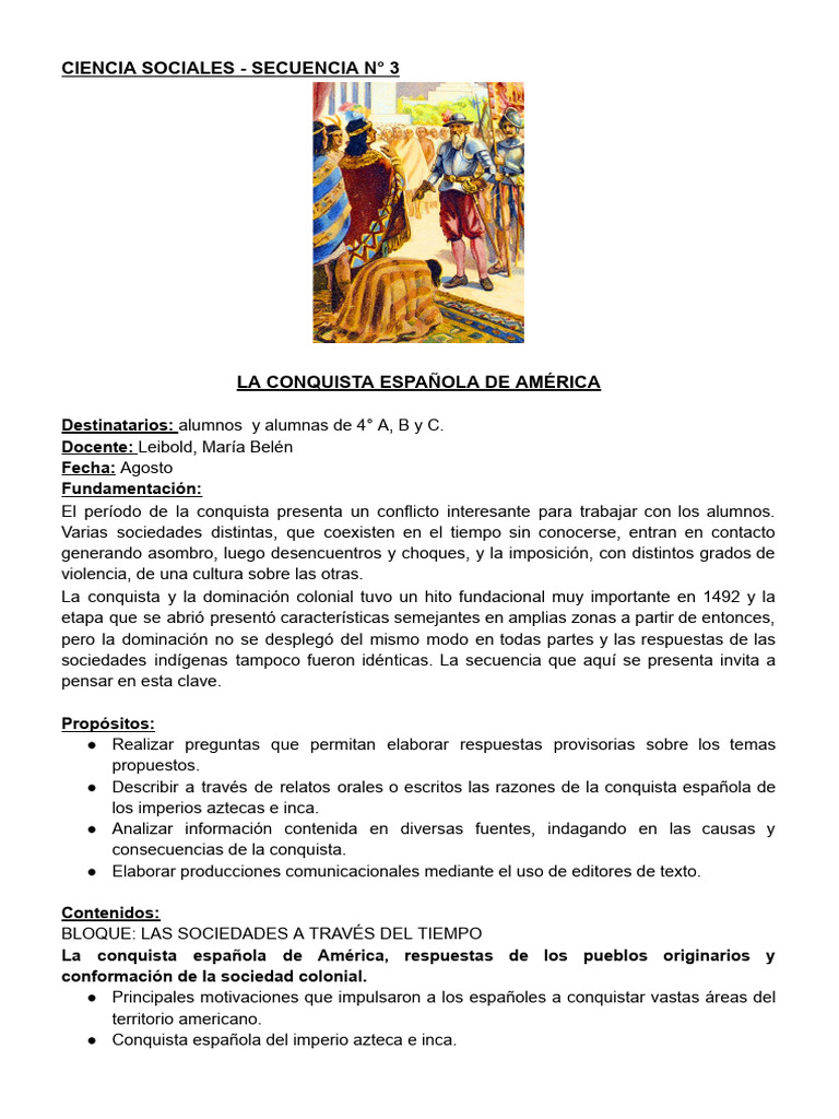 la conquista, el propósito ahora es acercar a los alumnos a la comprensión de las sociedades