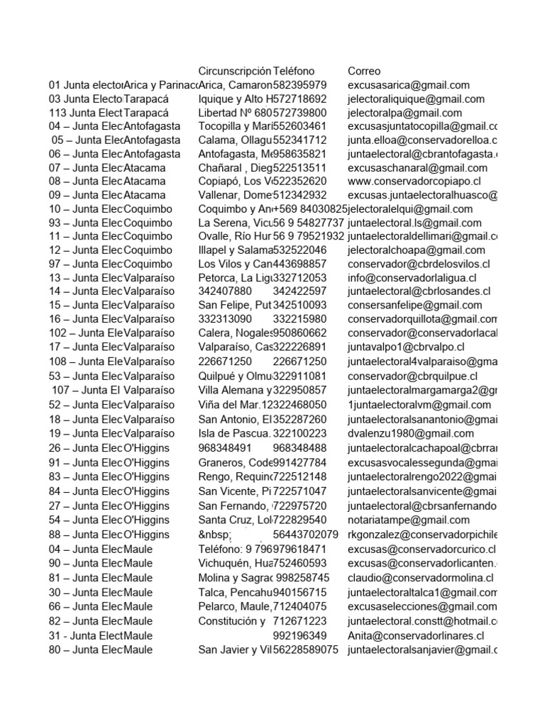 30 – Junta ElectMaule Talca, Pencahue940156715 juntaelectoraltalca1@gmail.com