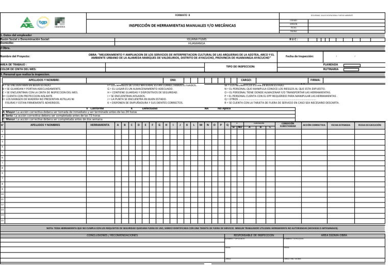 INSPECCIÓN DE HERRAMIENTAS MANUALES Y/O MECÁNICAS FECHA