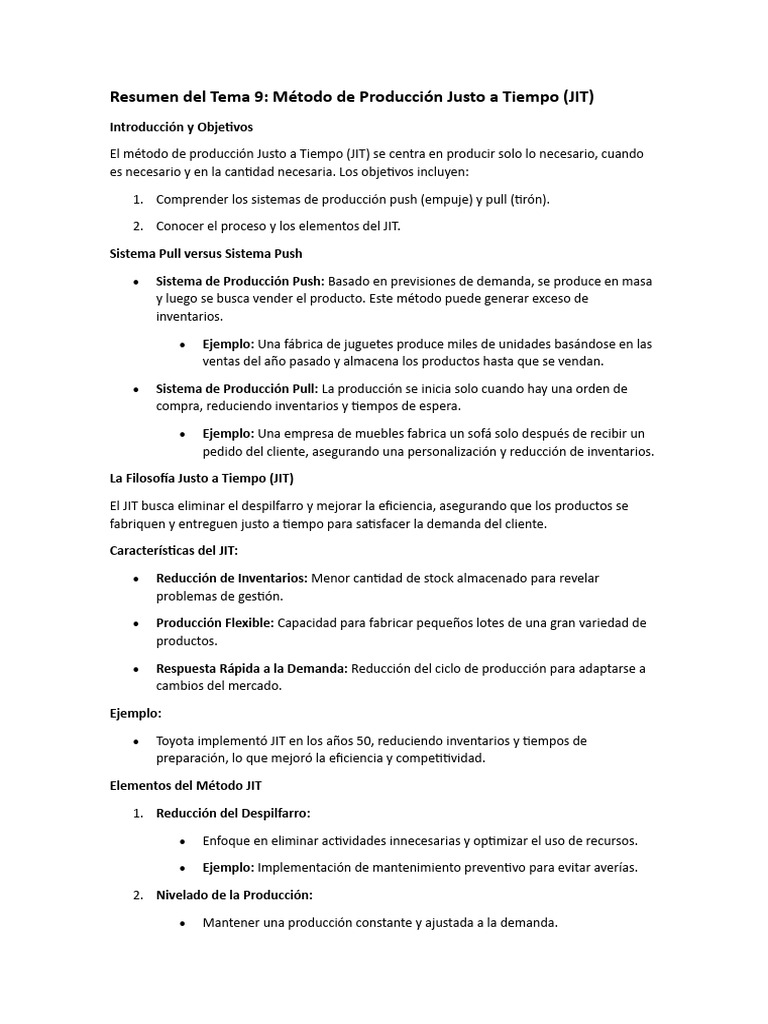 Resumen del Tema 9: Método de Producción Justo a Tiempo (JIT)