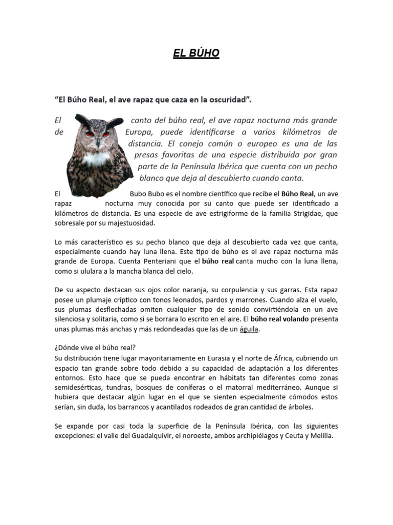 “El Búho Real, el ave rapaz que caza en la oscuridad”.