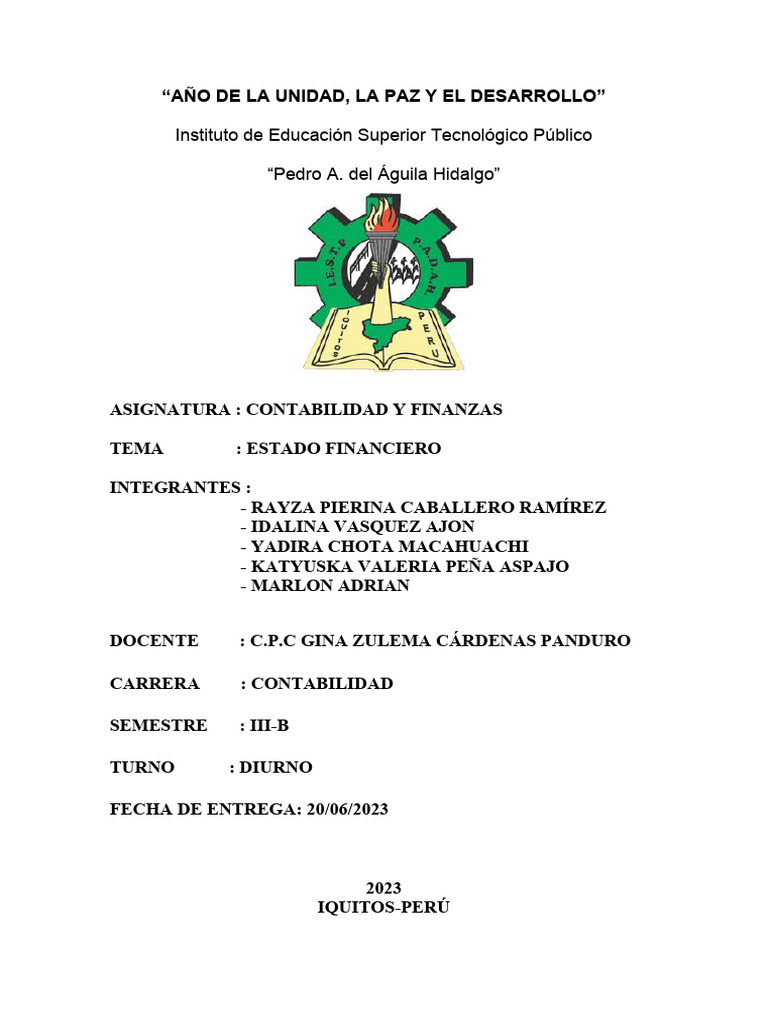 DOCENTE : C.P.C GINA ZULEMA CÁRDENAS PANDURO