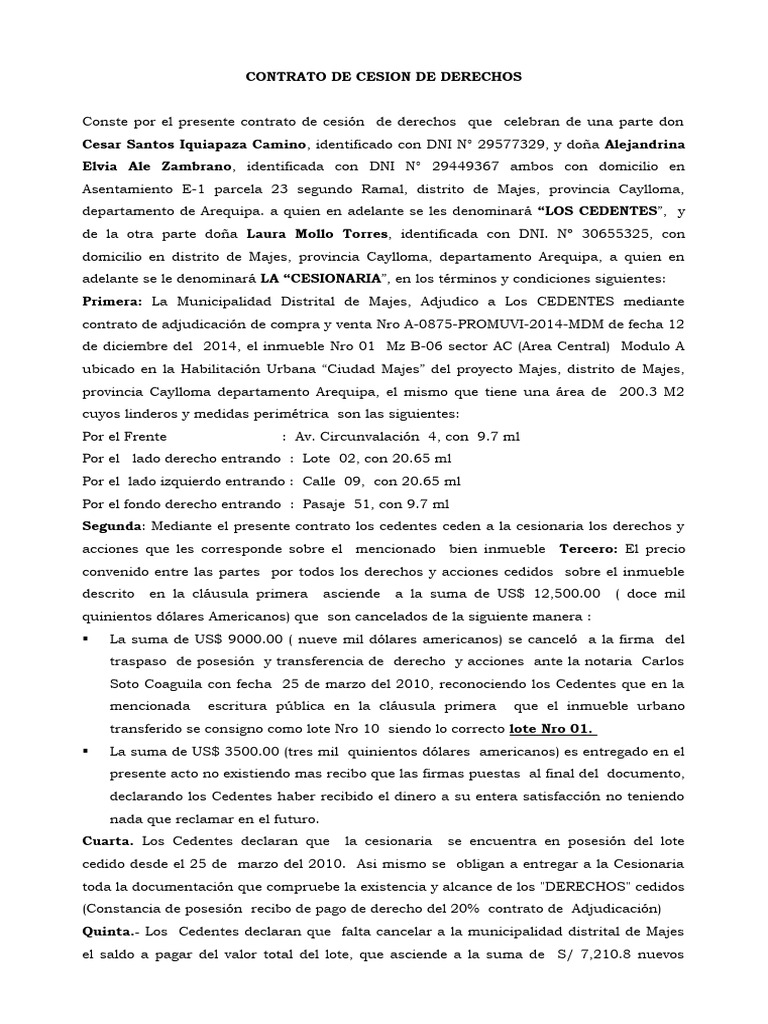 CONTRATO DE CESION DE DERECHOS